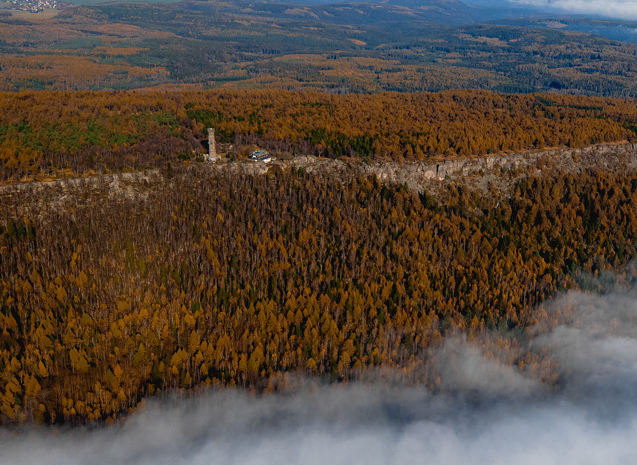 Děčínský Sněžník, the highest peak on the "table" Mountains, offers stunning panoramic views from its observation tower. The area features well-marked hiking trails through picturesque forests and meadows, making it a popular spot for outdoor enthusiasts. Its scenic surroundings and historical landmarks add to the peak’s appeal, providing a blend of natural beauty and cultural interest.